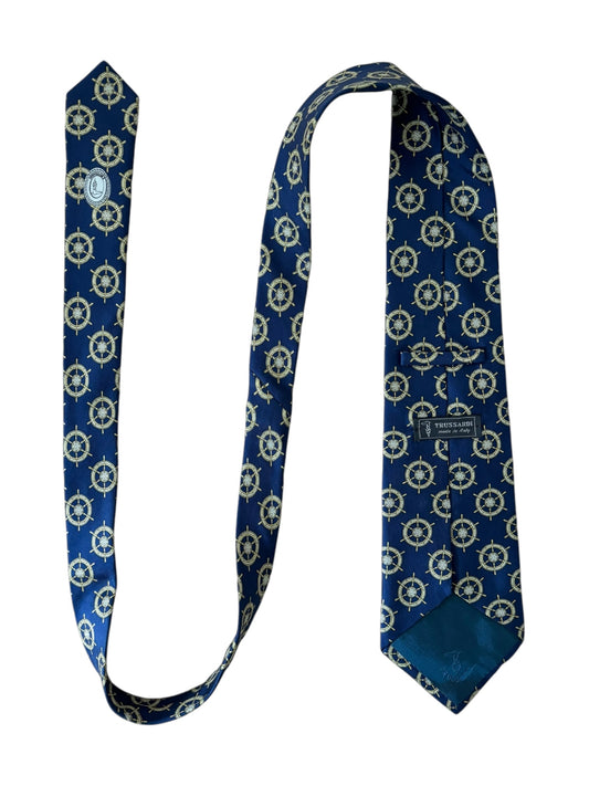 Nautical Wheel Print Silk Necktie
