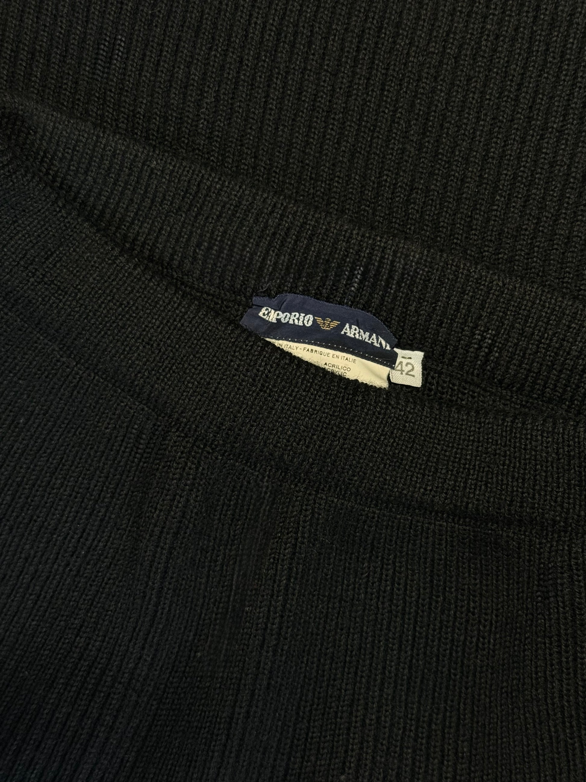 Vintage 1990s Emporio Armani ribbed knit skirt from the blue label line. Made in Italy from a structured wool blend with a body-following silhouette. Finished with an elasticated waistband and vertical rib construction that maintains shape and definition.