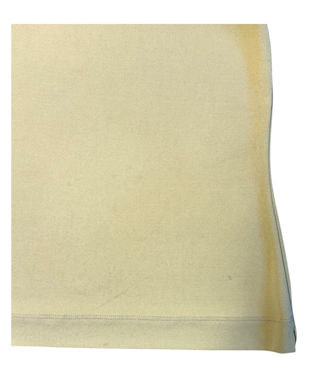 Vintage MaxMara sleeveless top crafted in Italy from a soft rayon and nylon blend. Designed in a warm beige tone with a clean V neckline and subtle side slits, it pairs easily with tailored pieces or denim.