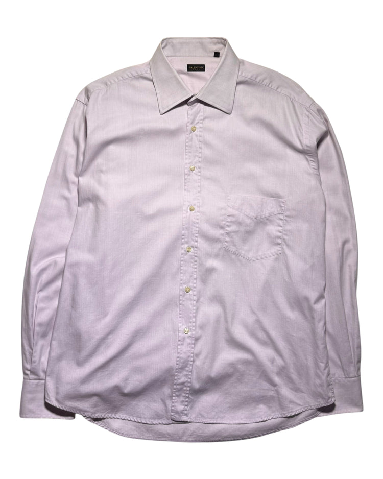 Mid 2000s Valentino Roma shirt in soft pastel lavender cotton. Designed with a clean front placket, spread collar and two-button cuffs. Cut for a straight and relaxed silhouette.