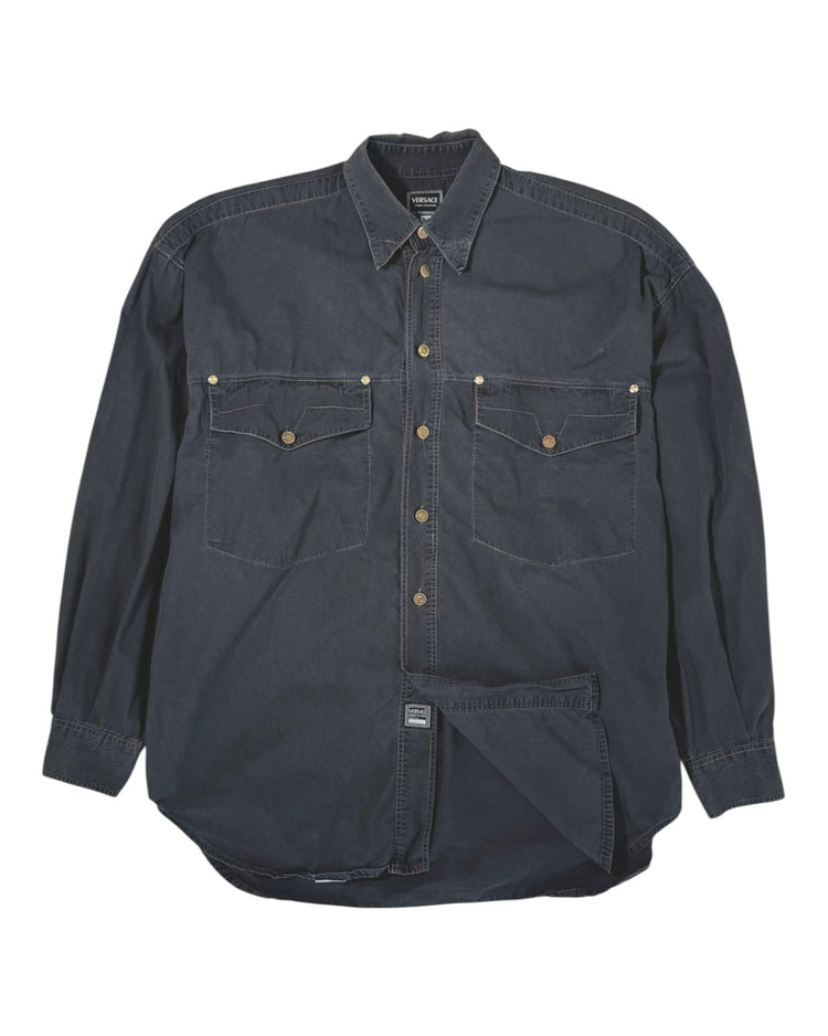 Early 2000s Versace Jeans Couture denim shirt in a faded black wash.